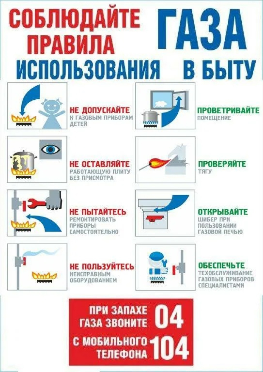 - Не допускайте к газовым приборам детей дошкольного возраста, престарелых и лиц в нетрезвом состоянии.